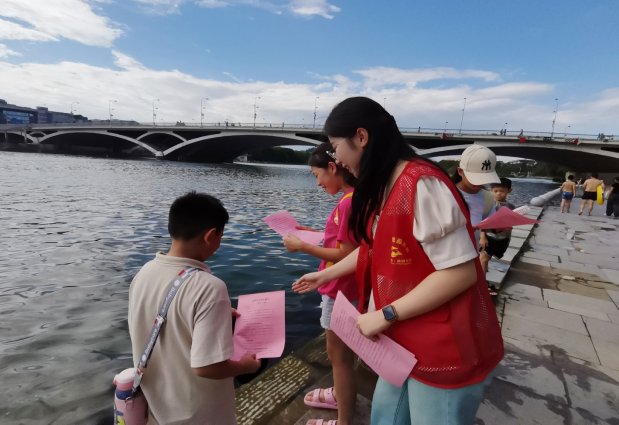 暑假期间,随着夏季气温逐步攀升,溺水事故呈现高发态势,为进一步加强未成年人溺水事故的预防和监护工作,全面提升社区居民的安全防范意识,8月2日下午桂林市财政局志愿者们顶着炎炎烈日,联合漓江社区共同开展“防溺水安全宣传”志愿服务活动。