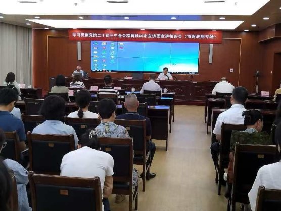 为深入学习贯彻党的二十届三中全会精神,9月13日上午,市财政局组织召开学习贯彻党的二十届三中全会精神宣讲报告会。会议邀请桂林航天工业学院马克思主义学院院长罗展鸿教授作宣讲报告,宣讲主题是:新征程上进一步全面深化改革的行动纲领,市财政局领导班子成员及全局党员干部职工220余人参加学习。
