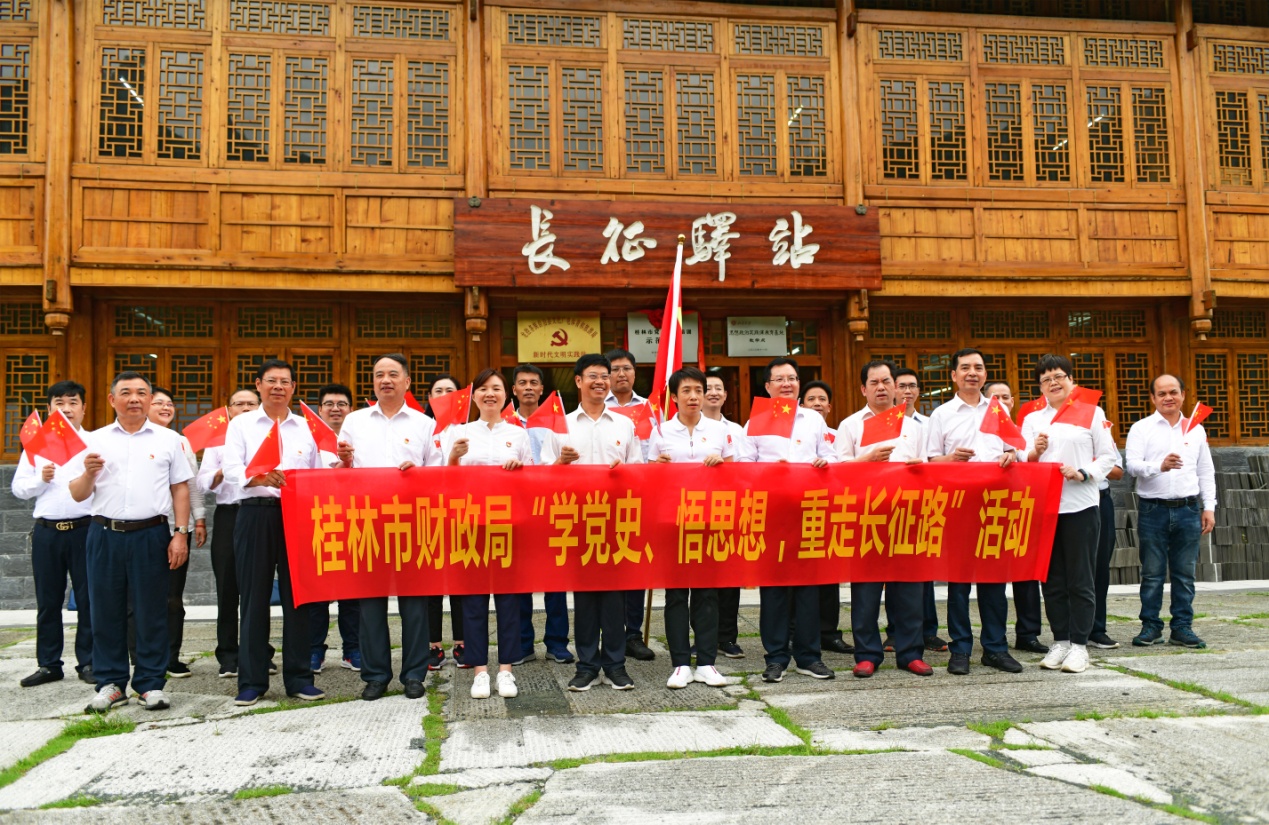 为不断推进党史学习教育走深走实,6月10日,桂林市财政局领导班子及处级党员干部、支部书记等40余人赴龙胜各族自治县,开展“感党恩跟党走、学党史促争先”党史学习教育主题党日活动。