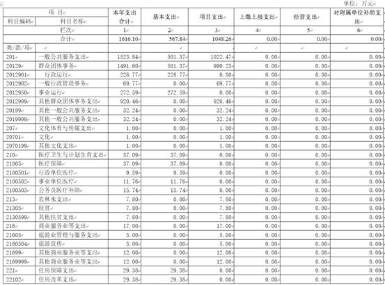 1.一般公共服务(类)1523.84万元:主要用于一般公共服务支出、群众团体事务行政运行、一般行政管理事务、事业运行、其他群众团体事务支出、医疗卫生与计划生育支出、医疗保障、行政单位医疗、事业单位医疗、公务员医疗补助、住房保障支出、住房改革支出、住房公积金。