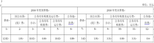 2016年度一般公共预算财政拨款安排的“三公”经费支出决算中,因公出国(境)费支出决算1.91万元;公务用车购置及运行费支出决算0万元;公务接待费支出决算0.40 万元。具体情况如下: